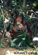 オランウータンとはマレー語で「森の人」という意味。スマトラ北部およびボルネオの低地部に棲息する。