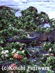 なかでも代表的なものは、何といっても海藻であり、ウミイグアナ、ウミガメ、魚、カニ、ウニなどの重要な食料になっている。そして、海藻は大きく3つのグループ、緑藻、紅藻、褐藻に分けられる。 |