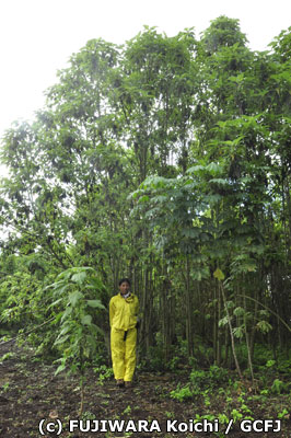 | 2007年05月に植えた苗が、いまではこんなに大きくなっています。苗の下にある看板の大きさと比べてみると一目瞭然! |