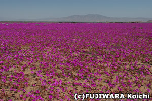 砂漠一面にピンク色のお花畑が広がっていたのです。