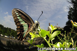 道路わきに植えられているクスノキがアオスジアゲハのエサになっていることも、北で暮らせるようになった理由です。