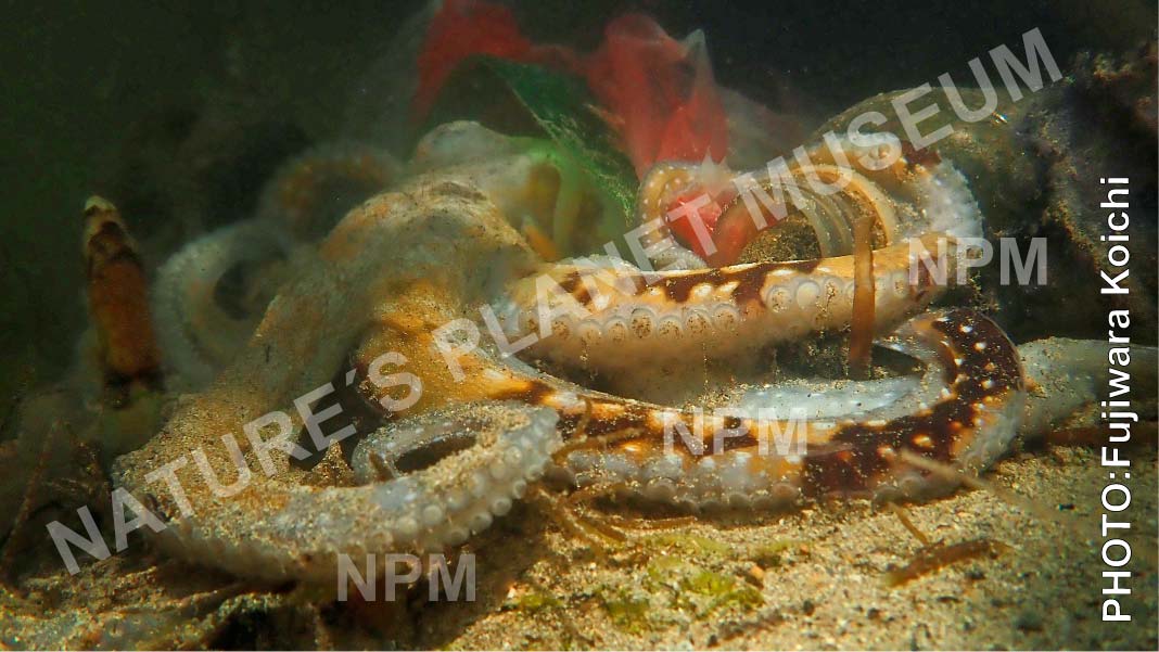 An octopus that roamed a plastic bottle on the seabed. Plastics are always