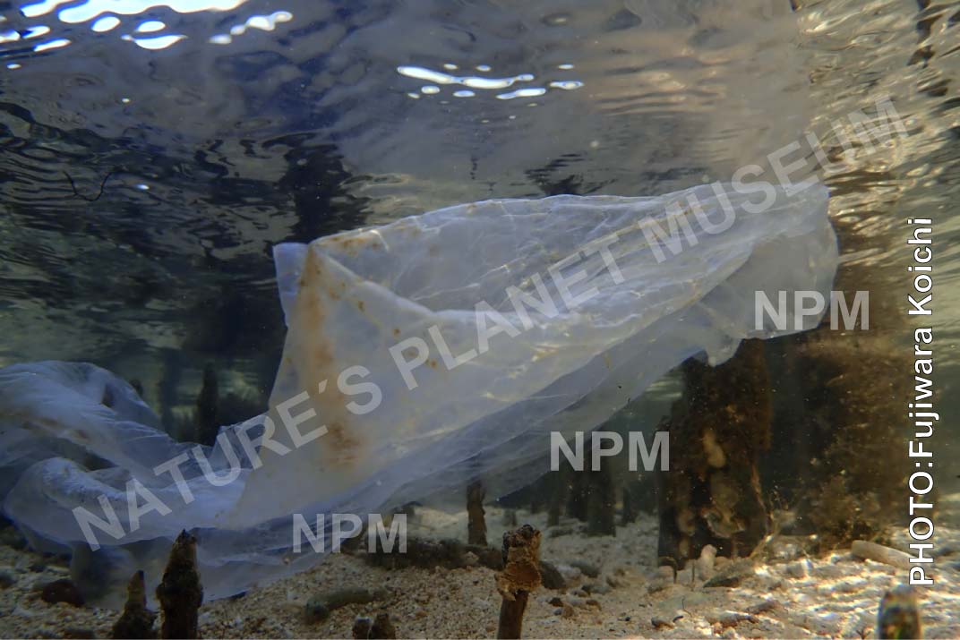 流れてきた合成繊維の衣類が、マングローブの枝にからまっていた。