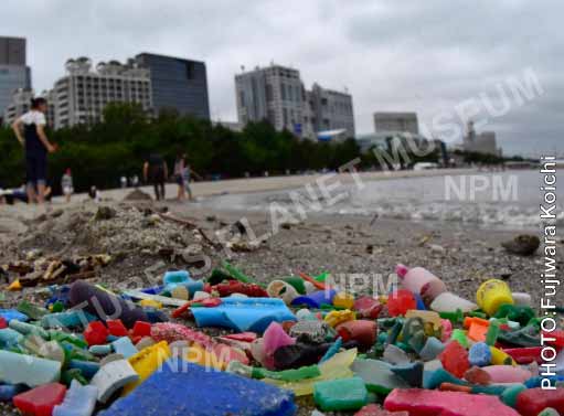 海に漂うプラスチックが、太陽からの紫外線や波の影響で細かくなったもの。大きさ5mmより小さいプラスチックは、マイクロプラスチックとよばれる。