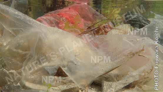 plastic bag. Actually he wanted to eat seaweed attached to the plastic bag.