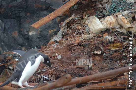 breeding ground. Some penguins pick up the plastic waste every time when they pass.