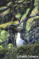 キガシラペンギンは、海岸近くの森林をすみかとしている。