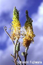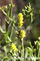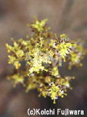 葉のない20cm程の房に、1cm弱の黄色い球状の花をつける。