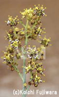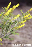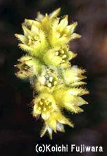 花は黄色で、5mm程度、縦に2〜10cmに並んで咲いている。