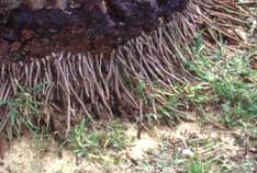 山火事で焦げた根元 |