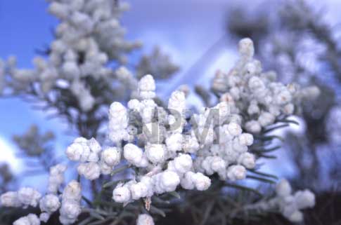 白いウール状のつぼみをもち、オレンジ色の花が咲く。潅木上で50cm〜3mにも成長する。