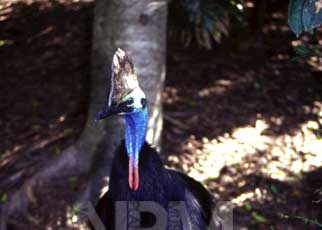 オーストラリア北東部の熱帯雨林に棲息する、攻撃的な鳥である。
