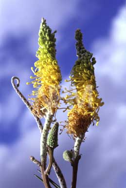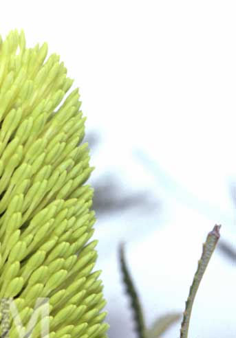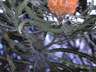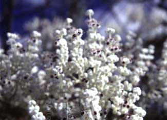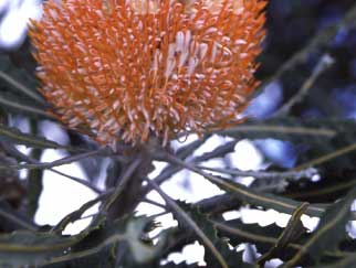 白いウール状のつぼみをもち、オレンジ色の花が咲く。潅木上で50cm〜3mにも成長する。