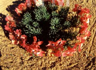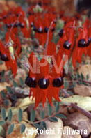 南オーストラリア州花の約8cm程の真っ赤なエンドウ形の花は、絹のような細かい毛で覆われている。