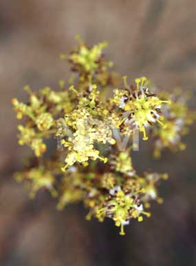 花は黄色く2cm程度で、一枝に5〜10個のつぼみをつける。また表面は綿のように柔らかい。