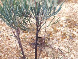 山火事で燃えて幹が黒くなることがあるが、死に絶えることはない。