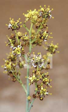 赤褐色の果実を穂状につける。有毒植物のひとつでもある。
