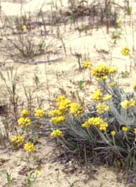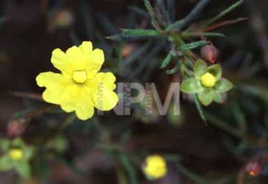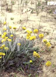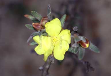 黄橙色の花をつけ、葉は灰色の毛で覆われている。 |