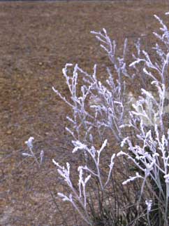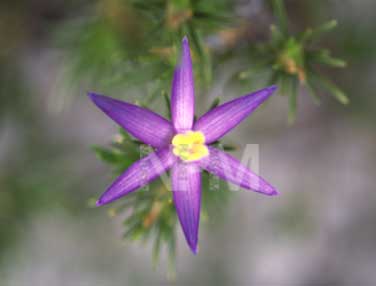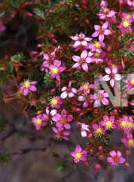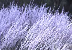 オーストラリア内陸部でよく見らる。葉や茎は短い毛で覆われ、赤みがかった紫の花は、灰色がかった白い毛で覆われている。 |