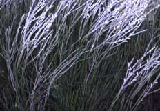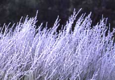 白色のネコの尾のような房に、濃紫色の花を咲かせる。